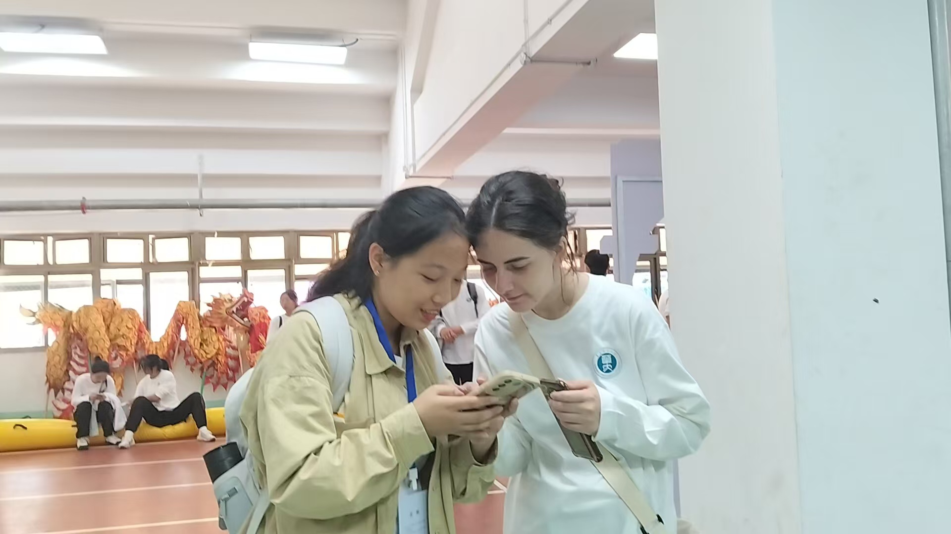 For Maria, dragon dancing is an exciting first-time experience. "It's not difficult, but it's really fun, and the atmosphere here is fantastic. Chinese culture is amazing!" she exclaimed. For Marina, participating a second time brought new friendships. "This time, everyone on the team is a beginner. I've made so many new friends. I guess that's one purpose of the sports festival: to give everyone a break from heavy schoolwork and help us build connections."