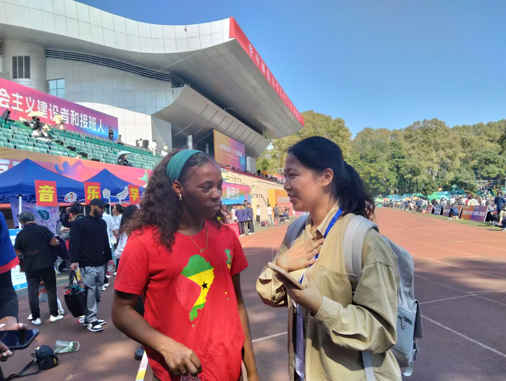 A spectator from Congo, Kexi shared: "It feels great to be here and share happiness with so many Chinese students. They may be a bit shy, but they're very friendly." When asked about how he feels about this sports meeting, he added: "The vibe is fantastic! The dynamic music makes me want to dance."