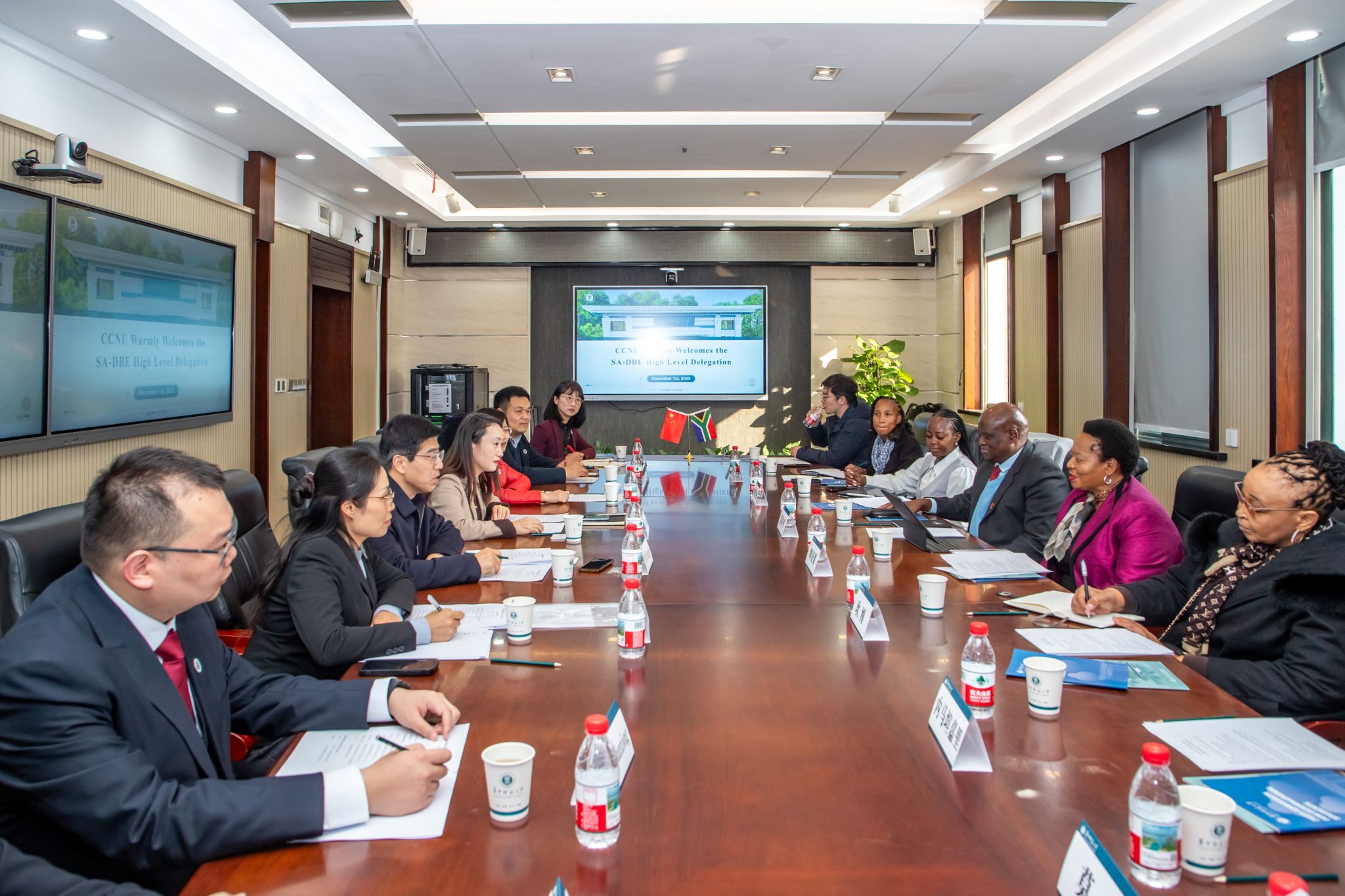 On December 1st, a delegation led by Mrs. Mbhaile, Deputy Minister of Basic Education of South Africa, visited our university. President Peng Shuangjie and Vice President Wu Dan met with the delegation in the conference room of the Administrative Building. Representatives from the Center for Language Education and Cooperation of the Ministry of Education attended the meeting, while relevant responsible persons from the Faculty of International Engagement, the Department of Domestic Cooperation and Training Management, and the School of Teacher Education participated in the discussions.
