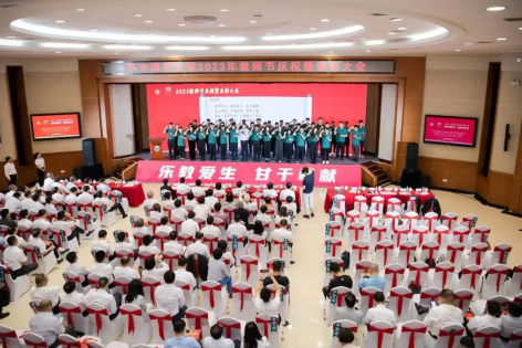 On September 13th,the 2023 Teacher's Day Celebration and Commendation Conference was held in the lecture hall of the Science Hall. Allschoolleaders, recipients of the important rewards and talent projects, representatives of thirty andforty years’ teaching experience, representatives ofretired teachers, and person-in-charge of all administrative departments attended the meeting.