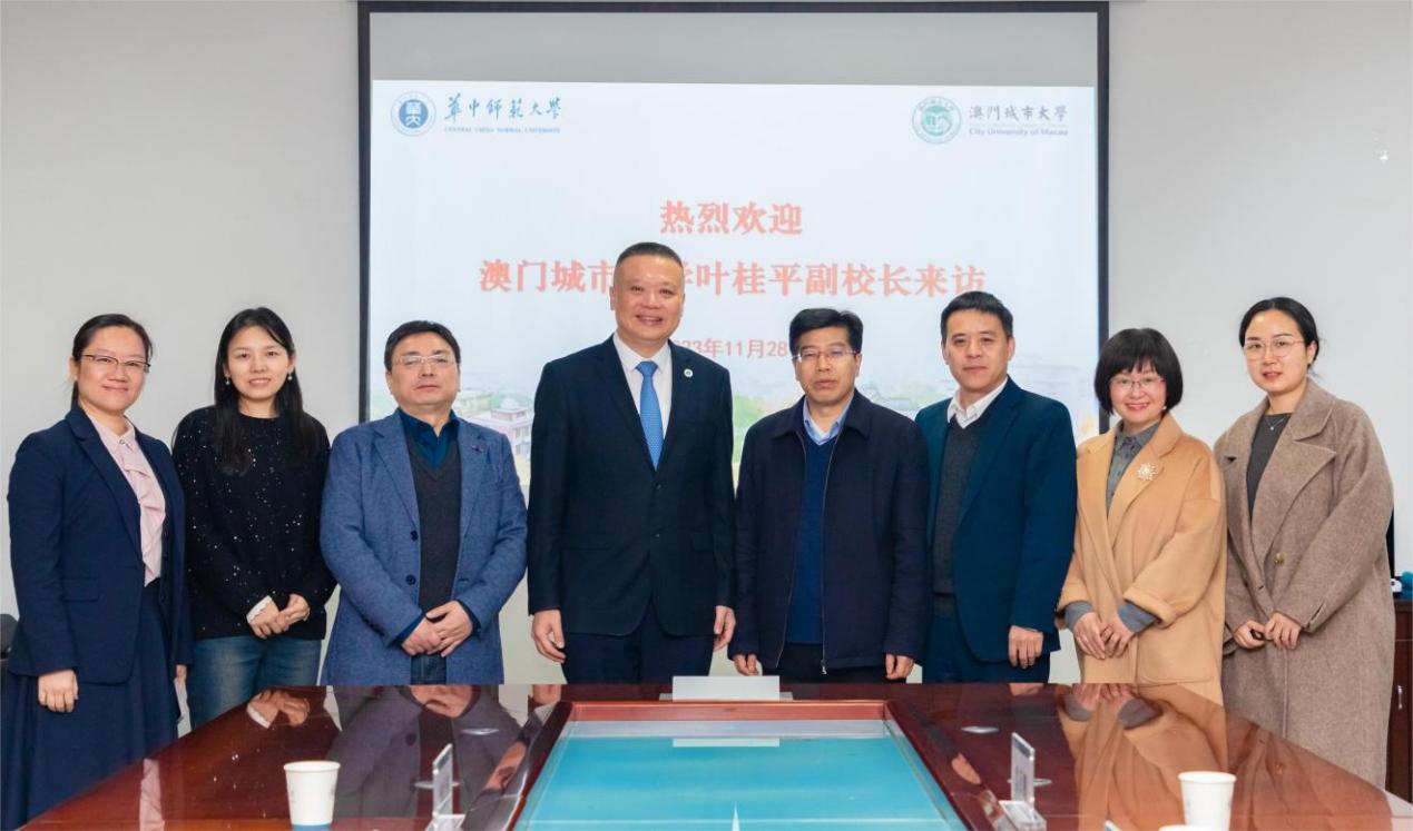 On 28th of November, professor Ye Guiping, Vice President of the City University of Macao(City U) visited CCNU and had a discussion with Vice President Peng Shuangjie on collaboration and exchange between the two institutions. Staff members from Graduate School, School of Politics and International Studies, and Office of Hong Kong, Macao and Taiwan Affairs also participated in the meeting.