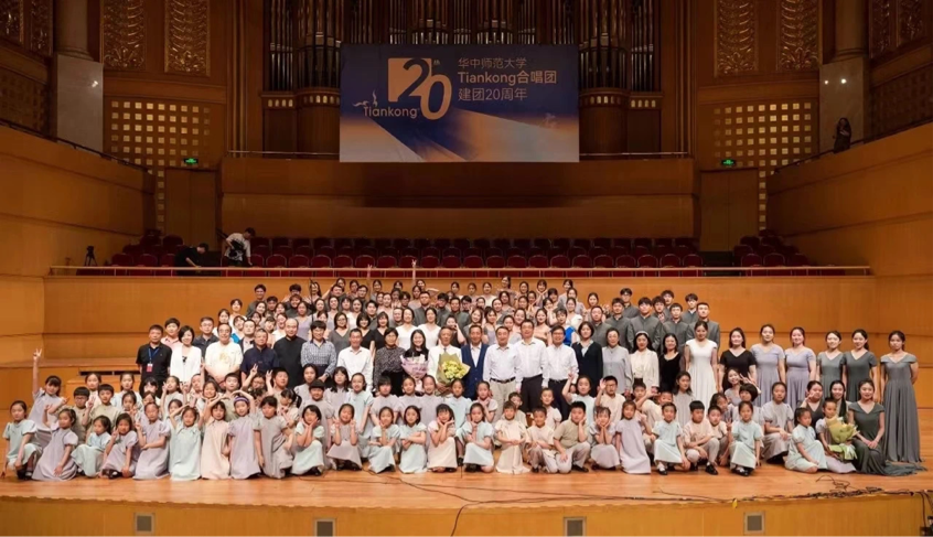 On 21st May,2023,the Tiankong Choir celebrated its 20th Anniversary Concert at Wuhan Qintai Concert Hall. The concert commenced with the song Tiankong II by the female chorus. "The sky is a visible dream and dream is the crystal clear sky." It has symbolized the choir's growth over two decades. The voices resonated with purity,passion,and sublime romanticism,evoking tears from old members who had traveled nationwide to attend. The concert concluded with all members singing the Birthday Song to mark Tiankong Choir's joyful 20th birthday.