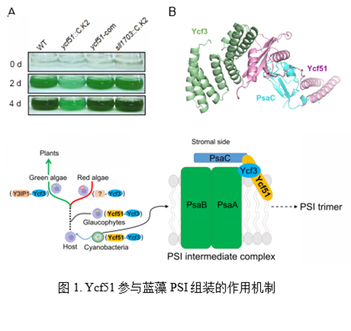 In this study, the researchers discovered that the existence of a PSI assembly factor, Y3IP1, which interacts with Ycf3 in Arabidopsis thaliana. However, despite this interaction, Y3IP1 cannot compensate for the phenotype resulting from the deletion of Ycf51 in cyanobacteria. This finding suggests that PSI assembly in cyanobacteria exhibits a certain degree of specificity. Ycf51, identified as the first unique PSI assembly factor in cyanobacteria, serves as a pivotal reference for further investigation into the mechanisms underlying light system formation.