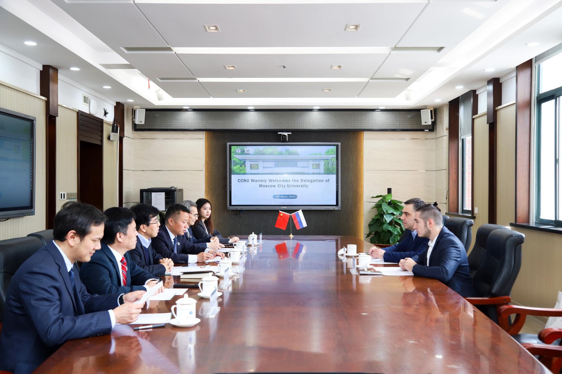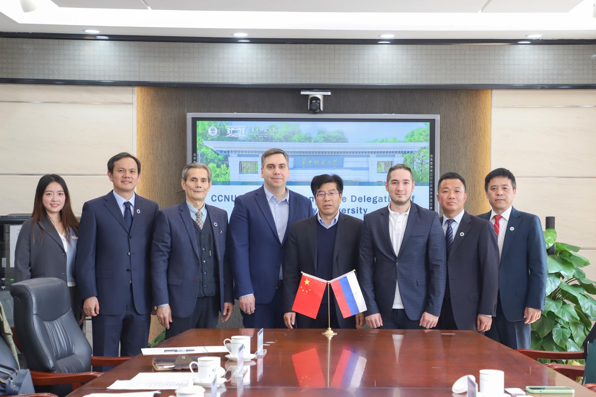 On March 15th, Vice President R. C. Suleimanov from Moscow City University led a delegation to visit CCNU. President Peng Shuangjie warmly welcomed the delegation at the Administration Building.