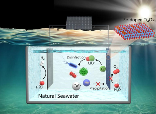 The team developed a Fe-doped Ti4O7 electrode (Fe-Ti4O7) using mechanochemical methods. The introduction of Fe enhances the electrophilicity of lattice oxygen active sites on the Ti4O7 surface, thus significantly improving the selective activation of low-concentration chloride ions present in natural seawater while effectively suppressing the deposition of alkaline earth metal ions on the electrode surface.