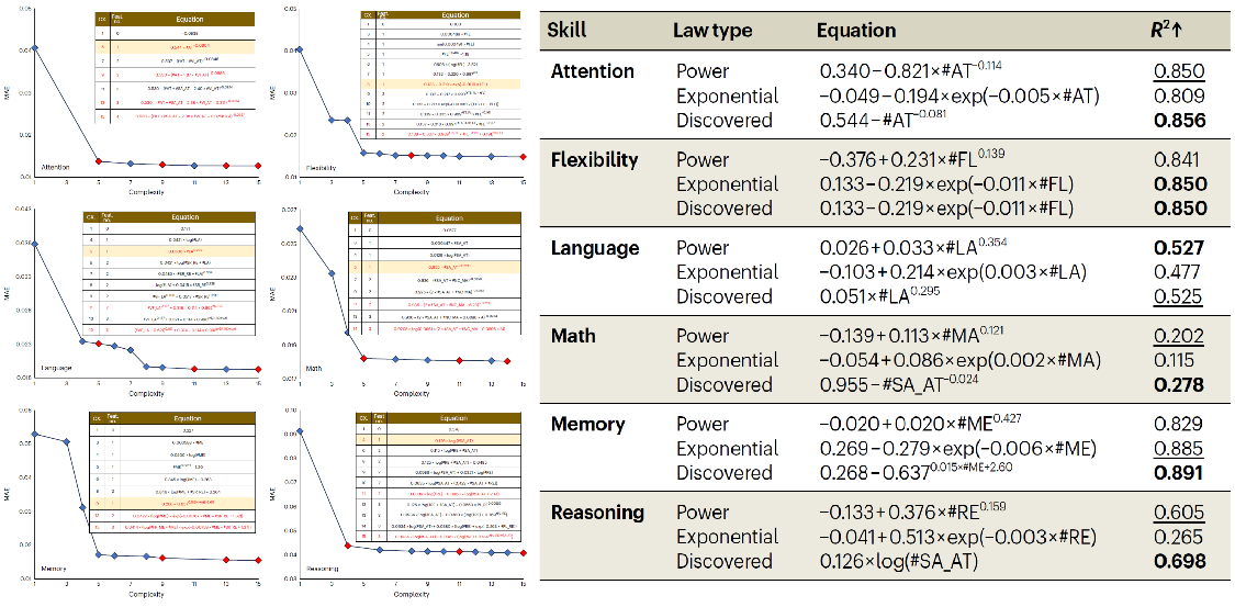This study pioneers AI-driven methods to automatically uncover fundamental learning patterns from large-scale, real-world data. It introduces a two-stage algorithm that accurately identifies core variables and reconstructs skill acquisition laws, surpassing traditional models in adaptability and fit metrics. Additionally, it discovers novel cognitive skill acquisition laws, validating and expanding existing research.