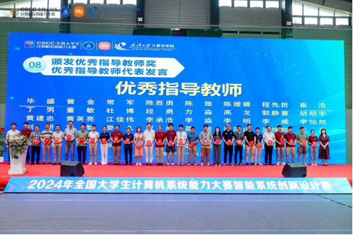 On August 25-26, the National Final of the Intelligent System Innovation Design Contest (Xiaomi Cup) in the 2024 National Student Computer System Development Capability Competition (NSCSCC), was successfully held at Wuhan University. The team from the School of Computer Science at CCNU performed exceptionally well in this new competition track and won the national first prize. Project instructors Zhao Zhou and Zhao Yuqi were also recognized with the title of "Excellent Instructors".