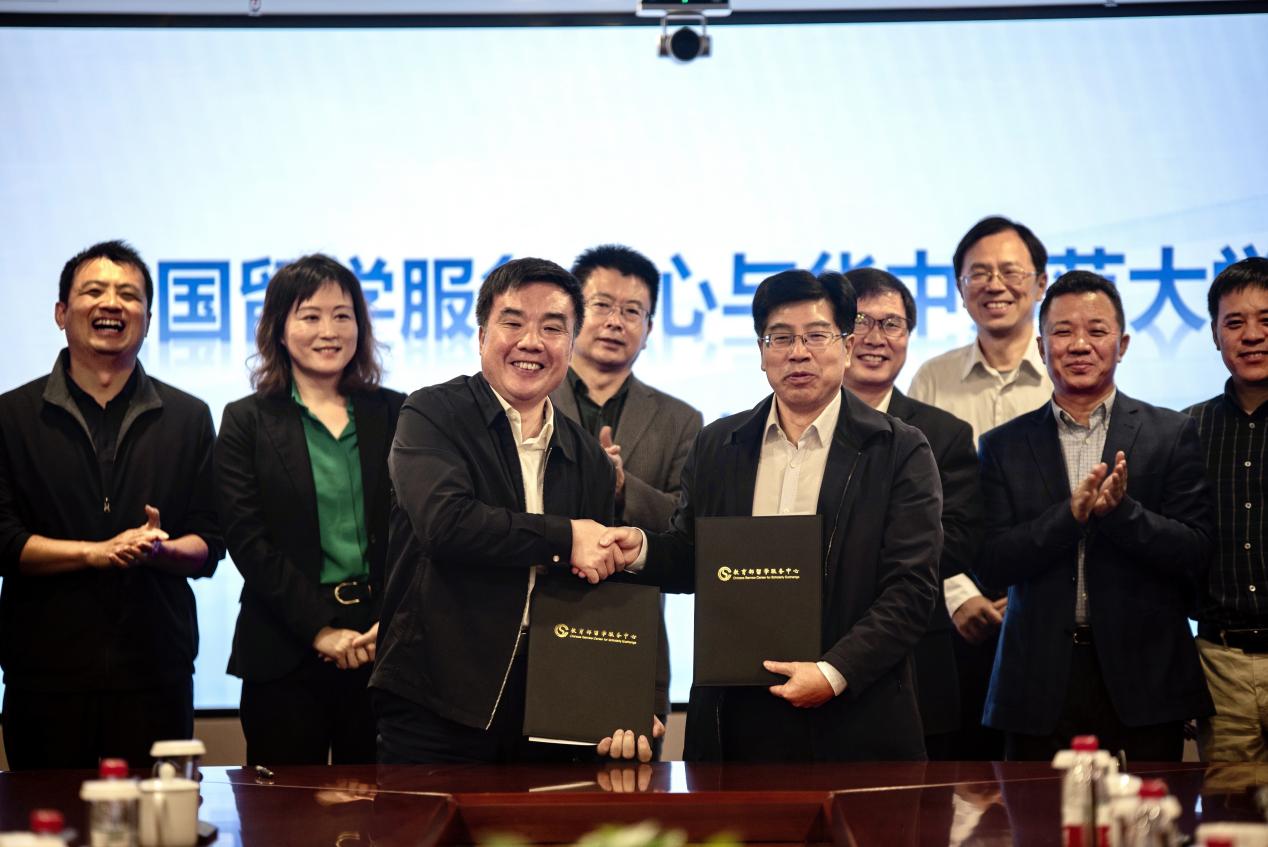 On October 8th, President Peng Shuangjie and Vice President Ren Youzhou led a delegation to visit Chinese Service Center for Scholarly Exchange (CSCSE), where they were received by Wang Daquan, Secretary and Director of CSCSE, and Deputy Director Xia Jianhui. During the meeting,President Peng and Director Wang signed a comprehensive strategic cooperation agreement.