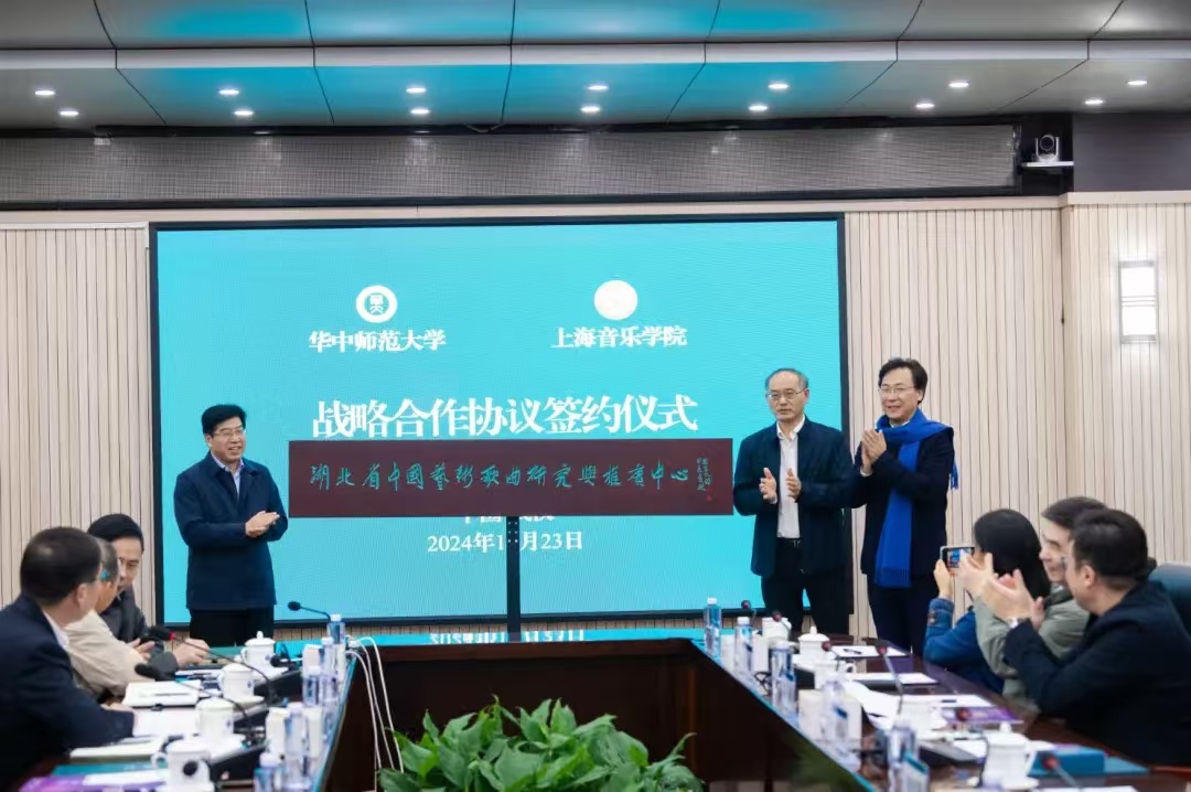 From October 21 to 23, professor Liao Changyong, Dean of the Shanghai Conservatory of Music (SHCM) and a renowned Chinese baritone, led a team to CCNU to conduct aesthetic education. On October 23, a signing ceremony for the strategic cooperation agreement between CCNU and SHCM was held, during which Liao Changyong was appointed as an honorary professor at our university.
