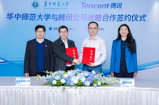 In the afternoon, CCNU signed a strategic cooperation agreement with Tencent at Tencent Binhai Building in Shenzhen.