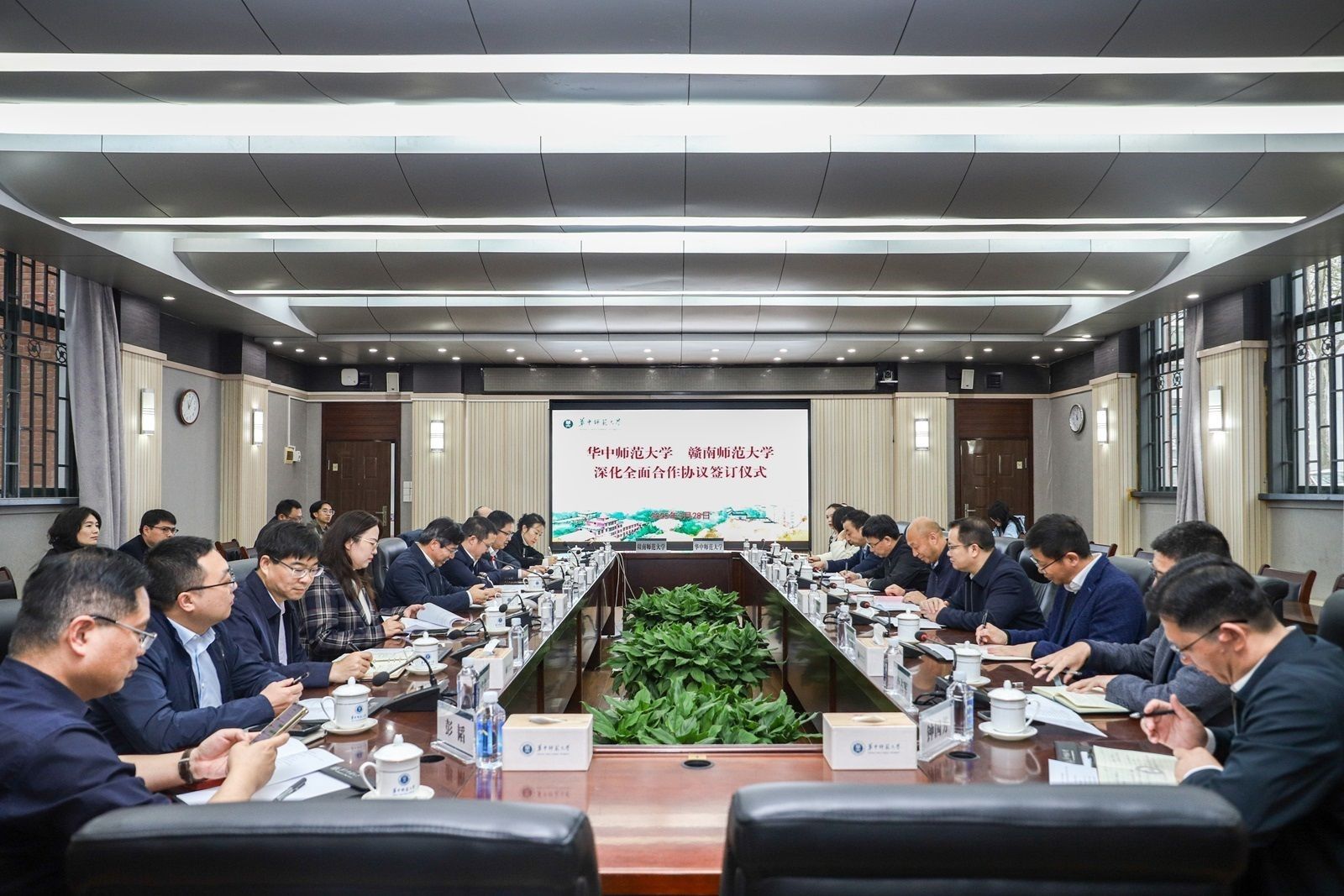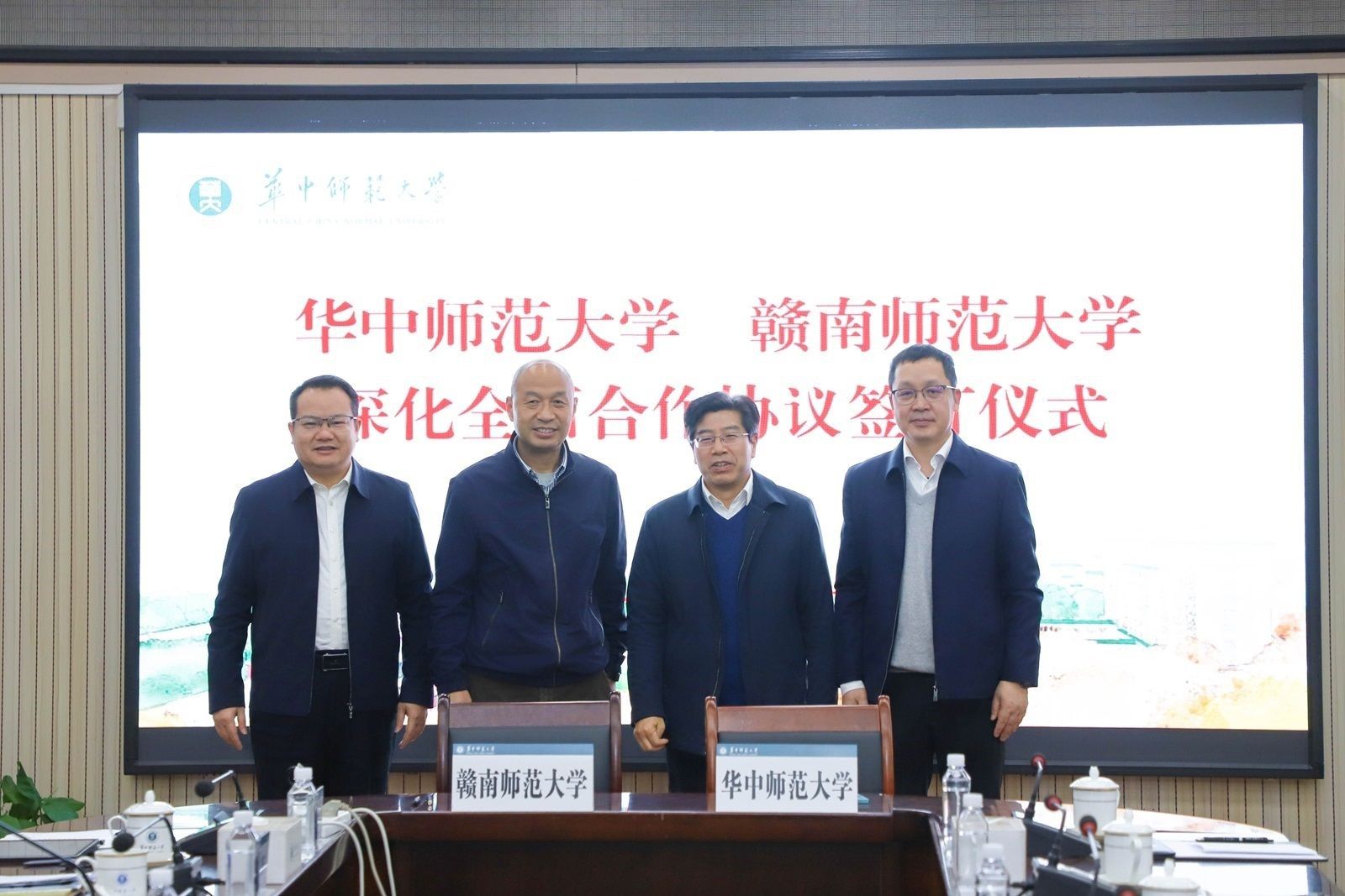 On March 28, a delegation from Gannan Normal University, led by President Chen Yiwang and Vice President Xiao Dusen, visited Central China Normal University (CCNU). The two universities signed a comprehensive cooperation agreement during a meeting.