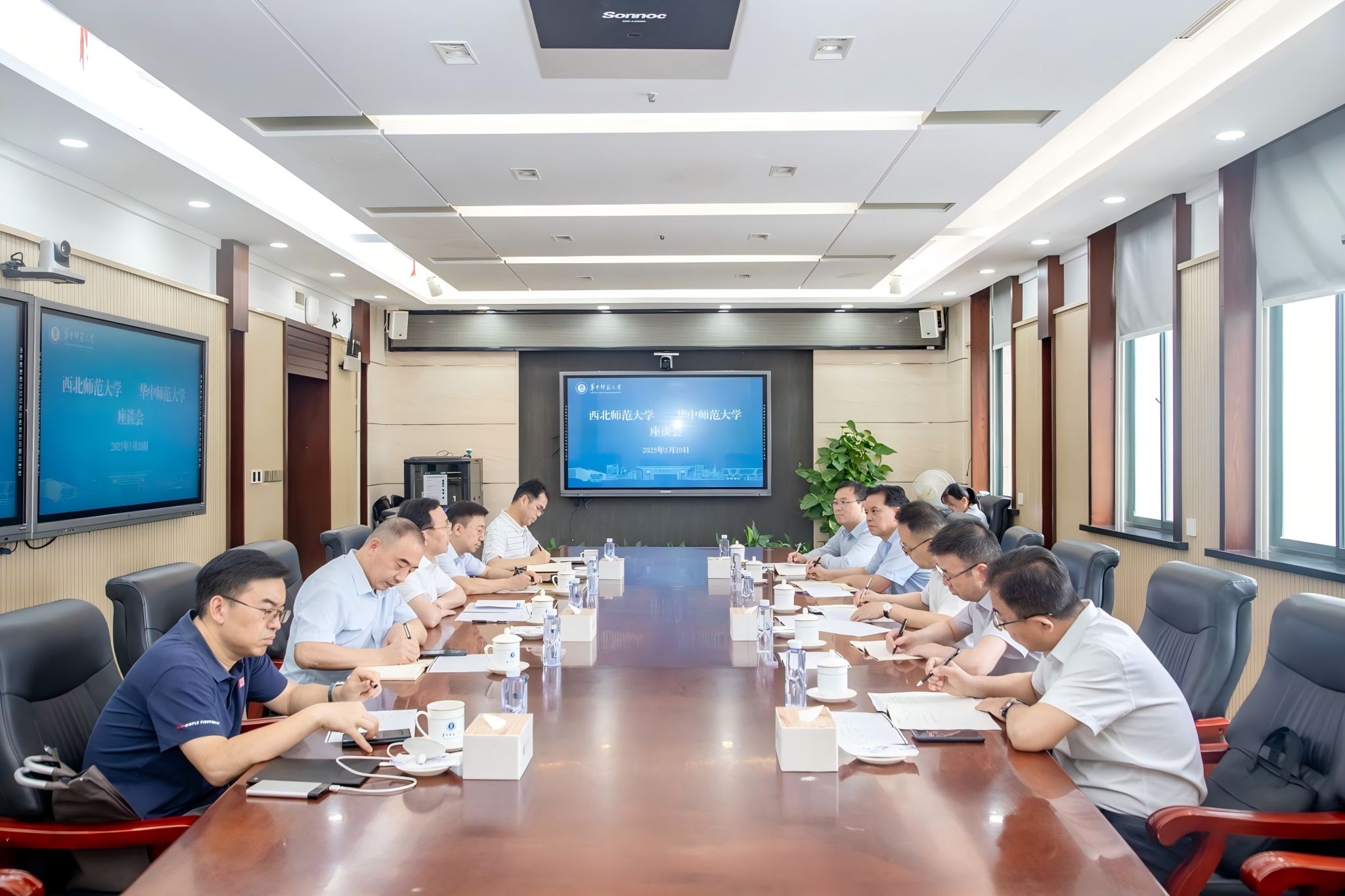 On May 20, a delegation led by Jia Ning, Secretary of Northwest Normal University (NWNU), and Yan Yan, Vice President of NWNU, visited Central China Normal University (CCNU) for research and exchange. The delegation held talks with Xia Lixin, Secretary of CCNU, in the conference room of the Administration Building.