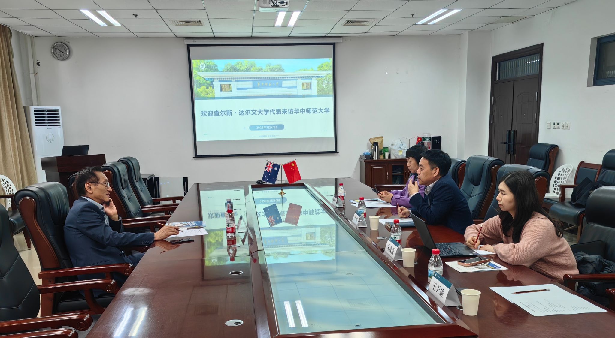 On the afternoon of March 20, Mr. Lin Yong, Director of Global Affairs of Charles Darwin University, Australia, visited Central China Normal University (CCNU). A discussion meeting was held with directors from the Faculty of International Engagement, the School of Urban and Environmental Sciences, and the Faculty of Artificial Intelligence in Education.