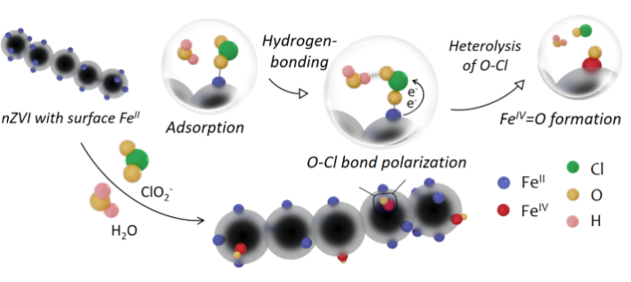 Professor Ai Zhihui's team has developed a novel strategy for the synthesis of FeIV=O. They employed chlorite ions (ClO2–) as oxidants, achieving the selective synthesis of high-valent iron (≡FeIV=O) on the surface of nano zero-valent iron (nZVI) under ambient temperature and pressure conditions, with a remarkable selectivity of up to 99%.